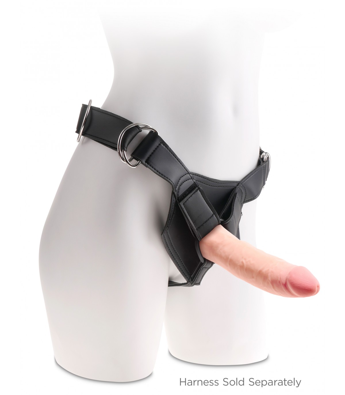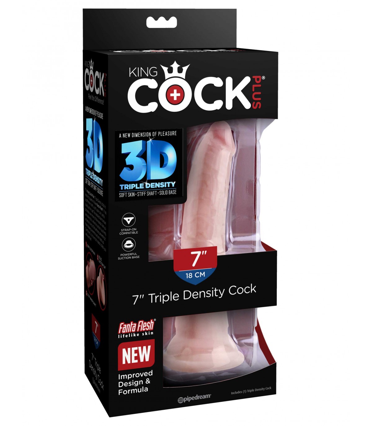 The 7″ triple-density King Cock® Plus is made from new and improved Fanta Flesh® material, making it rigid on the inside and soft on the outside. The realistic outer skin is smooth to the touch, while the inner shaft is rigid and erect like a real penis, making your pleasure experience as real as possible. The solid suction cup has been redesigned for greater adhesion, giving you more versatility and comfort during use. The suction cup also makes this triple-density 7″ King Cock® Plus harness compatible. • Greater realism • Soft skin with rigid shaft • Less odor • Improved suction cup stability • Wide base is compatible with Trap-On harness Measurement: 18 cm.
