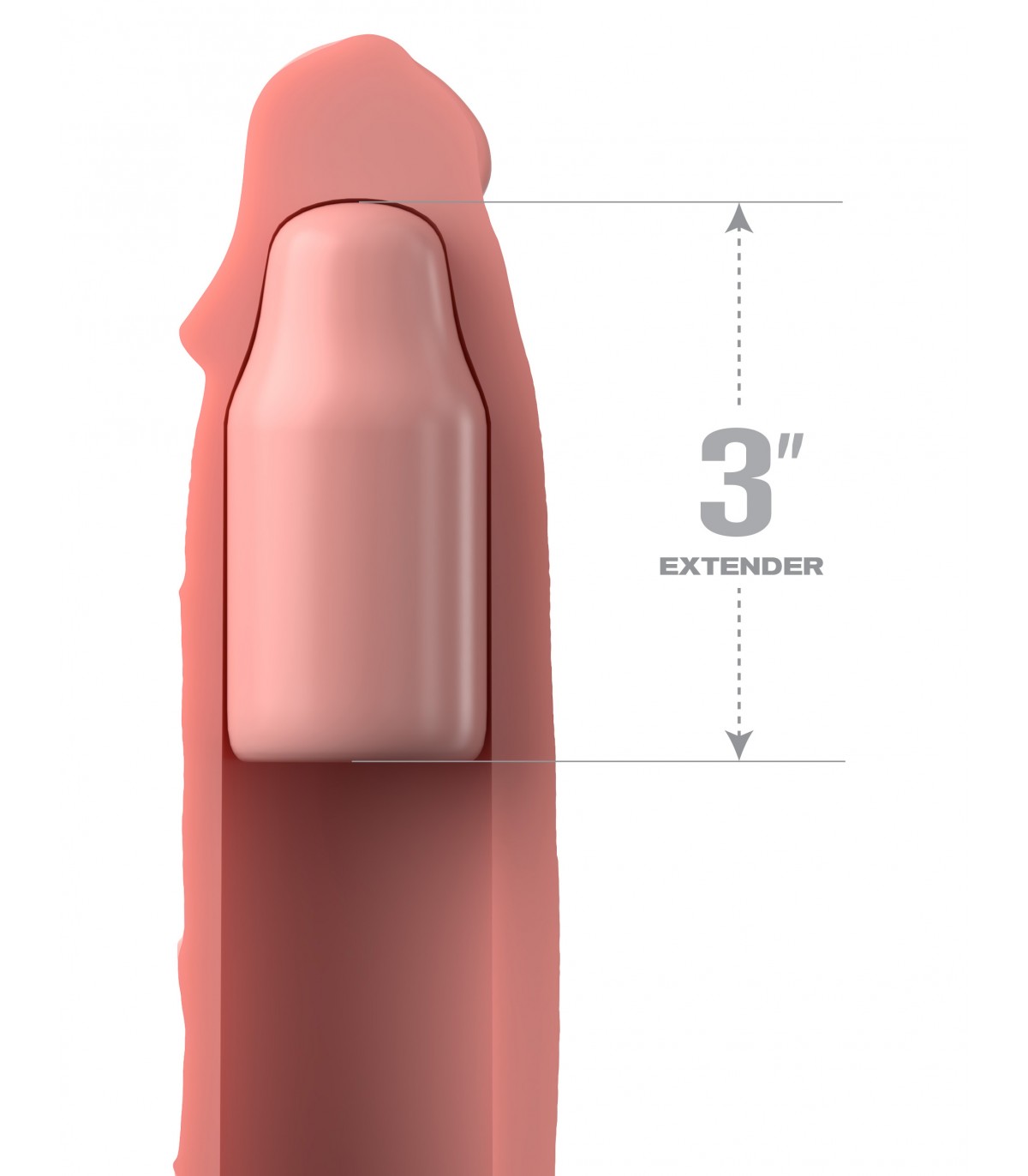Instantly transform your penis into a pleasure machine with Fantasy X-tensions Elite! Made from ultra-hygienic Elite™ silicone, this performance-enhancing sleeve fits like a glove and feels like a second skin, giving users extra length, increased girth, and ultimate confidence. Satisfy your partner and avoid embarrassing mid-ride disappointments with your new secret weapon! Perfect for those with erectile dysfunction and performance anxiety, Fantasy X-tensions Elite enhancers will deliver results that both partners will appreciate. Your silicone Fantasy X-tension Elite is a customizable extension that can be easily trimmed at the base for the perfect fit. It’s super stretchy to fit most sizes and comfortable enough to help you last longer. Both partners will enjoy deeper penetration with the removable extender, while the ultra-realistic sleeve makes the wearer 66% thicker in every way. It could be you! • 3″ (7.6 cm) removable extender • Adds up to 66% girth • High quality Elite™ silicone • Realistic textures and details • Trimmable for a perfect fit • Stretches to fit most sizes • Perfect for people with ED Measurements: 23’11 cm x 4’78 cm.