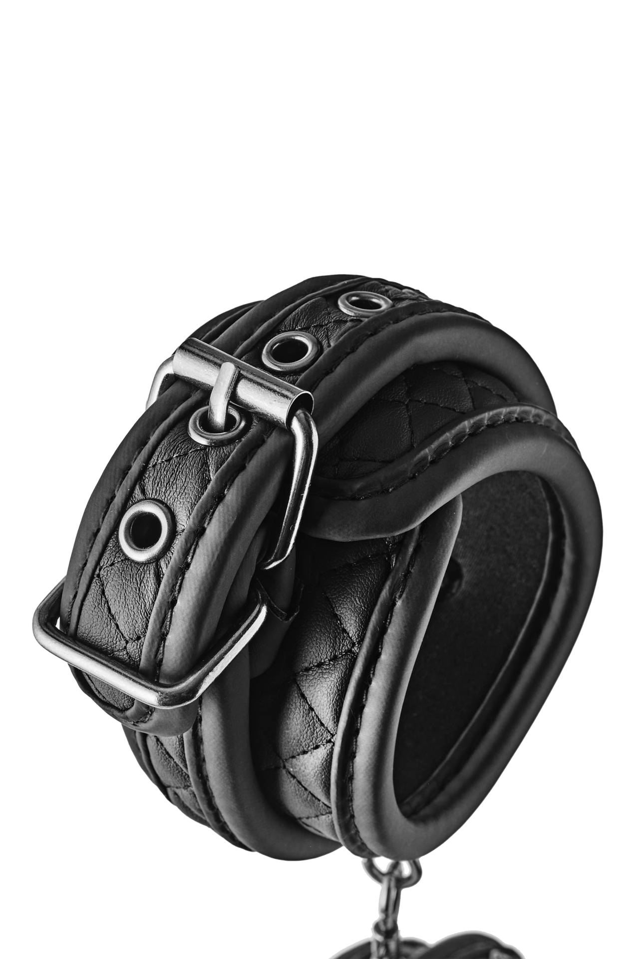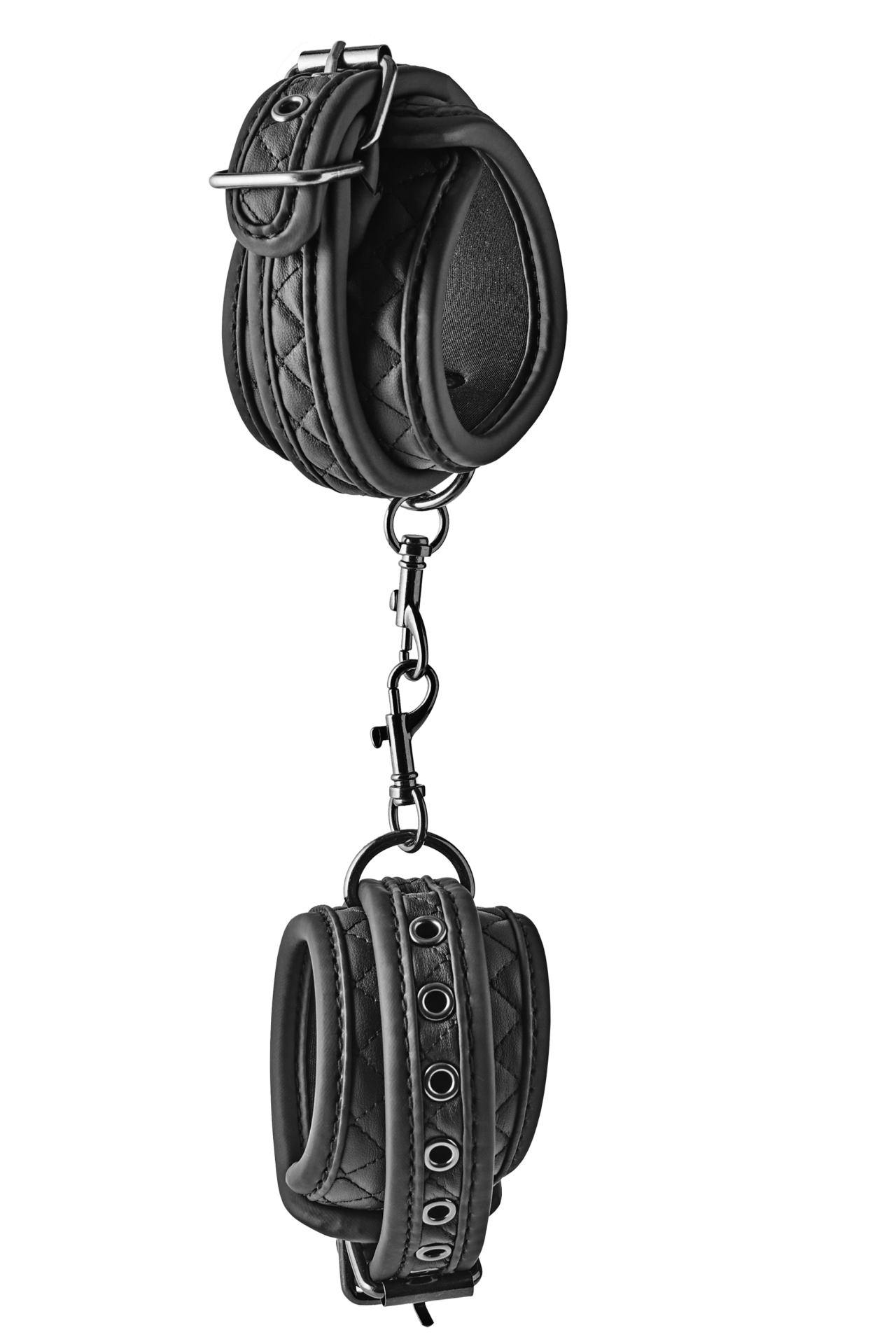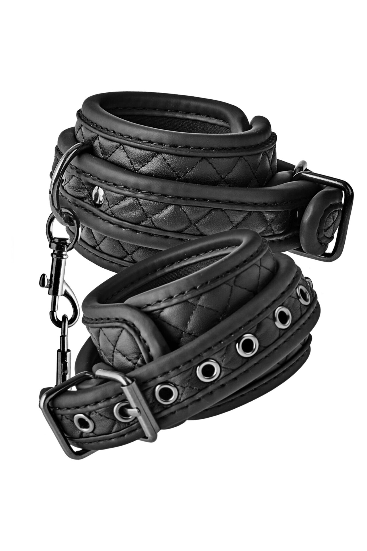Il bondage con stile e comfort grazie alle manette per caviglie blaze ankle cuff diamond in nero. realizzate in ecopelle vegana con un design elegante a punto diamante, queste manette offrono un tocco di lusso al tuo gioco erotico. completate da ferramenta nera priva di nichel, sono completamente regolabili per adattarsi alla tua misura, mentre il rivestimento in morbido neoprene assicura un comfort duraturo. perfette per i principianti e gli amanti del bondage esperti.