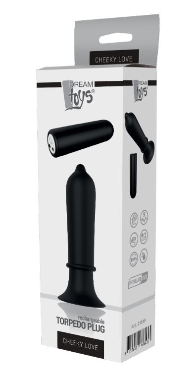 The Torpedo Plug is an anal plug made of medical grade silicone, with a vibrating bullet. Easy to insert because of the smooth surface of the plug. The wider base of the plug enhances the sense of security while using the anal toy. The plug can also be used as a finger sleeve. The removable bullet has a powerful motor and offers 9 different patterns of vibration. The bullet is rechargeable. This can be done with the included USB cable that clicks to the 2 magnetic contact points on the bullet.