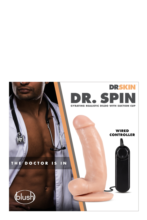 Dr. Spin is ideal for those of us who love the fullness and intense sensation of a gyrating, spinning shaft and head! Massage your G spot or prostate with 7 thick inches of vibrating realistic cock and balls. You’ll also enjoy a harness compatible, suction cup base that allows endless, creative play possibilities. Alone or with your partner, Dr. Skin™ is ready to indulge you in any fantasy. Made of non-porous PVC, Dr. Skin is free of phthalates, paraffins, and latex. Dildo is waterproof submersible for easy cleaning and play in the bath or shower (controller is not waterproof). Requires 2 AA batteries (not included).