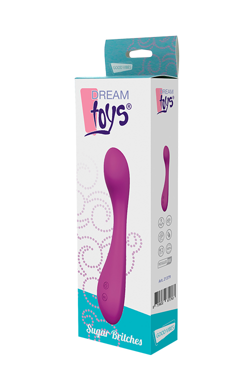 The Sugar Britches vibrator is made of body safe silicone and has a smooth slim shape. The powerful motor offers 9 vibration patterns. At the top of the shaft it is 3.6 cm wide, in the middle it’s narrower. This vibrator is great to use over and over again for sweet moments of excitement.