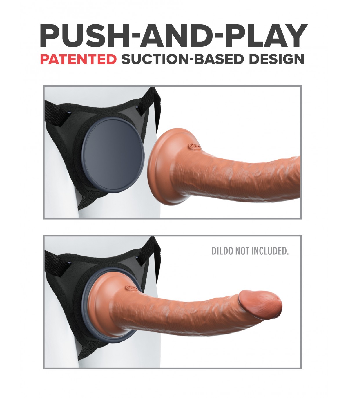 No rings, no clasps, no fuss! Patented PUSH-AND-PLAY powerful suction design! The patented Body Dock® Elite takes strap-on play to a whole new level. It features a premium silicone docking plate that contours to the shape of your body for a perfect fit. Adjustable side-release buckles and padded rear support are also included. Swapping out your favorite strap-on attachment has never been faster or easier! It’s as simple as snapping the suction cup of your favorite dildo or vibrator onto the docking plate, while the nylon straps easily adjust to fit most body sizes and types. Best of all, it works with most dildos on the market today, including some you may already own. No rings. No snaps. No fuss! Patented suction-based design Press and play! Simply press the suction cup of your favorite dildo or vibrator against the concave suction base until ALL the air between them is released. The suction creates a super strong bond with no rings or clips required! Angled suction plate keeps your dildo erect Body Dock® features an angled suction base to help counteract the sagging caused by traditional harnesses, keeping everything looking as natural and lifelike as possible. • The easiest strap-on silicone harness system on the market! • Fits any dildo with a suction cup diameter of 3.4 in (8.6 cm) or smaller • Angled suction base keeps dildo erect • Flexible, form-fitting silicone body plate conforms to the curves of your body • Strong nylon straps, padded back support and adjustable buckles • Easily adjusts to fit waists up to 54 in (137 cm)