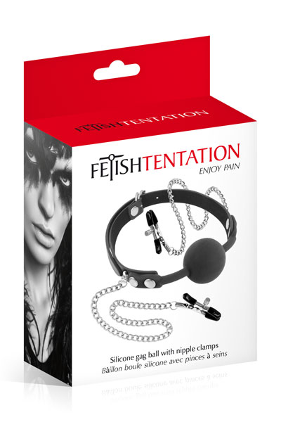 Fetish Tentation- – Ball Gag Classica con Pinze per Capezzoli – Nera