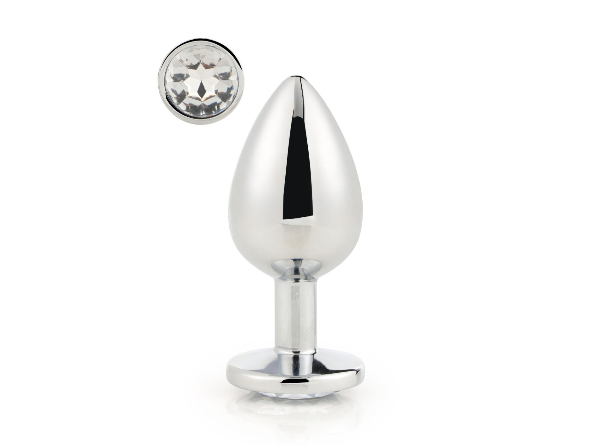 The Gleaming Love collection presents this Large shiny anal plug with gem stone. Made of smooth lightweight aluminium and seamless, this pleasure toy is easy to glide and the flared base ensures a sense of security while keeping the jewel sitting comfortably between the butt cheeks.