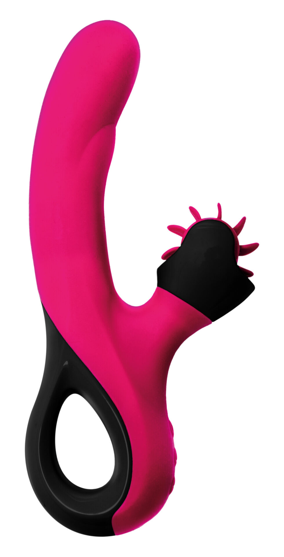 Vibratore ricaricabile con stimolatore clitorideo realizzato in silicone morbido e setoso. Contiene due potenti motori e puo' essere utilizzato con varie modalità di vibrazione e intensità.