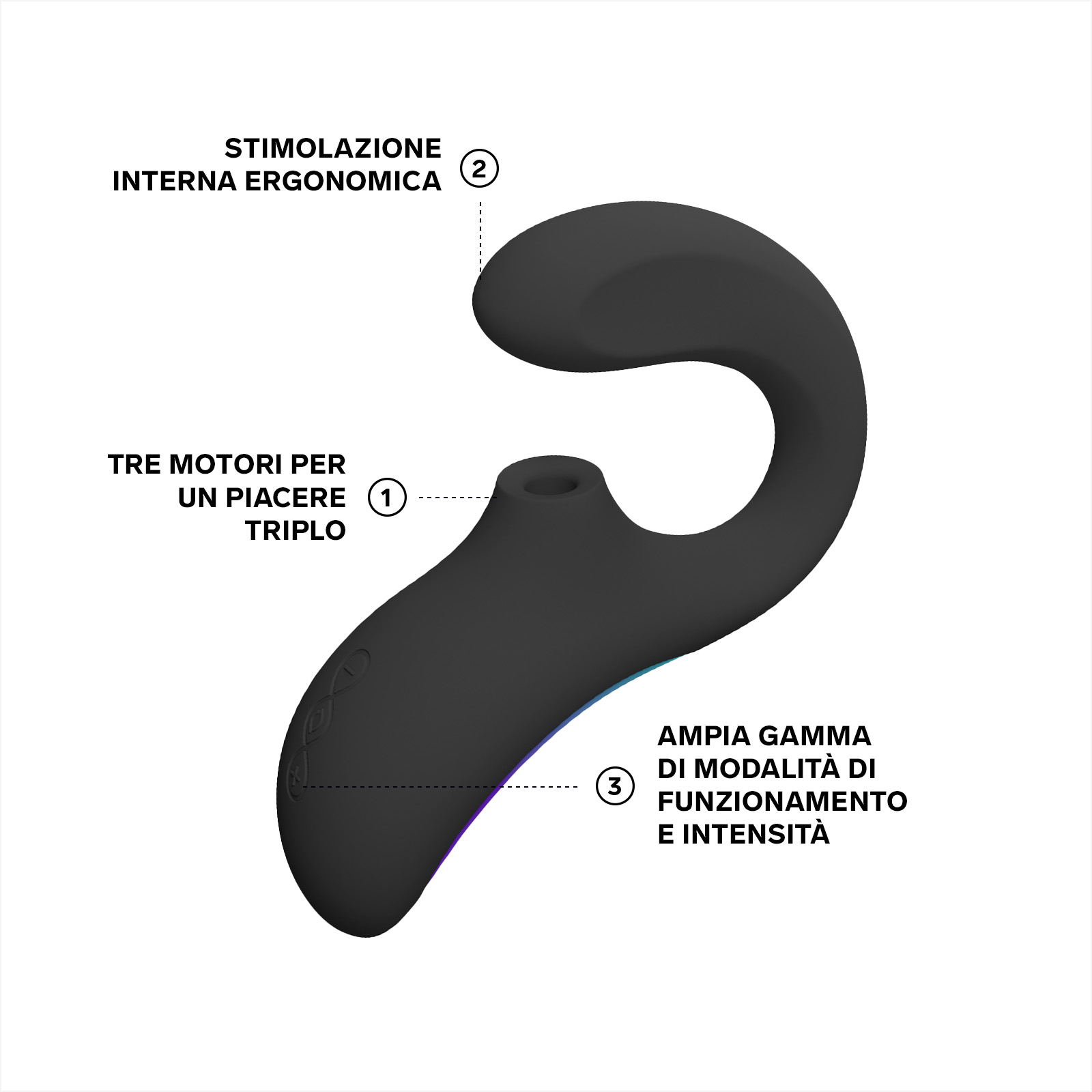 Tre motori vibranti che offrono una sensazione di appagamento totale dentro e fuori.