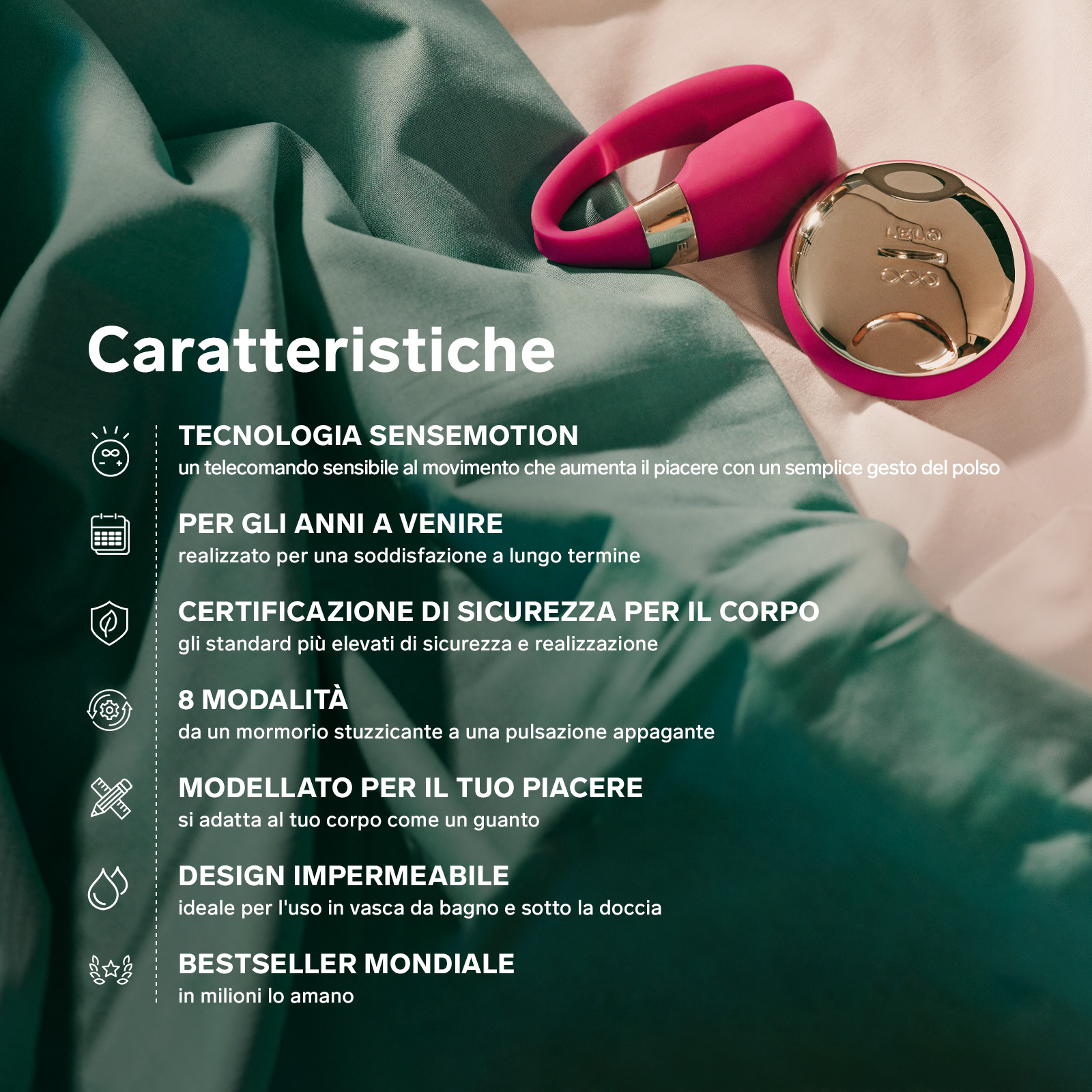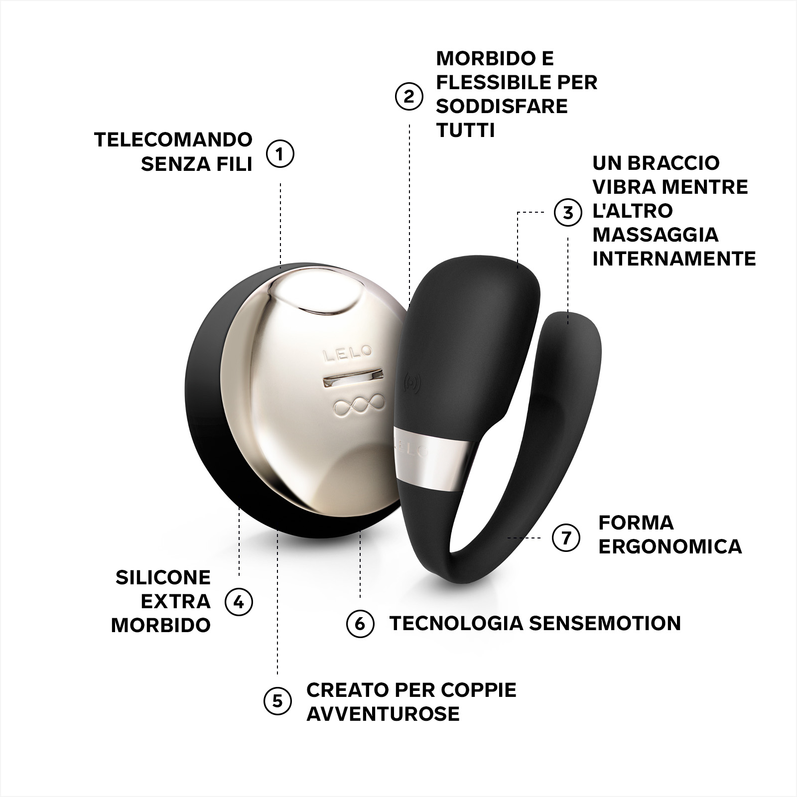 Le intense vibrazioni forniscono una soddisfazione mirata ad entrambi i punti di piacere, per il massimo piacere e comfort. Impermeabile, ricaricabile e dotato dell'esclusiva tecnologia SenseMotion di LELO, TIANI 3 è l'ideale per condividere climax simultanei con il tuo partner.