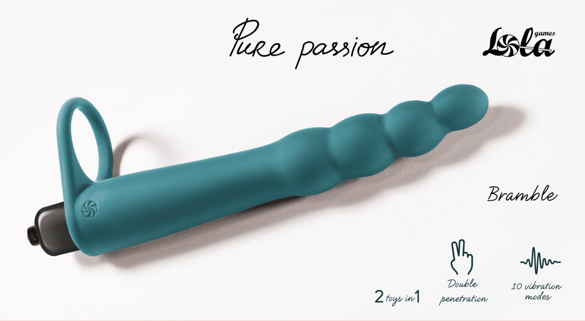 Dildo per doppia penetrazione Bramble realizzato in silicone anallergico. Forma in rilievo e pieghevole. Può essere posizionato sulla radice del pene tramite anello fallico. Si allunga bene e si adatta a qualsiasi dimensione. La stimolazione aggiuntiva viene effettuata per mezzo del vibrobullet con 10 modalità. È alimentato da 1 batteria AAA (non inclusa). Può essere facilmente rimosso dalla custodia in silicone e utilizzato separatamente.
