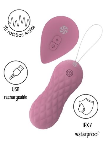 L'ovetto vibrante Dea ha 10 modalità di rotazione vibrante. La particolarità del Dea è la capacità di ruotare il proprio corpo attorno all'asse centrale per un'ulteriore stimolazione. Questo articolo è perfetto per allenare i muscoli del pavimento pelvico, così come per giocare da soli o con un partner.