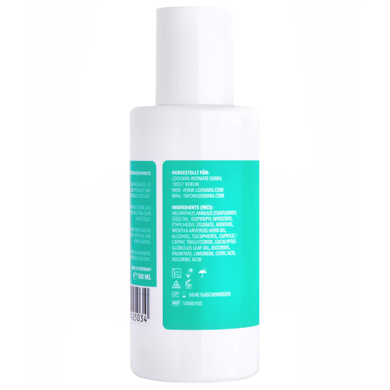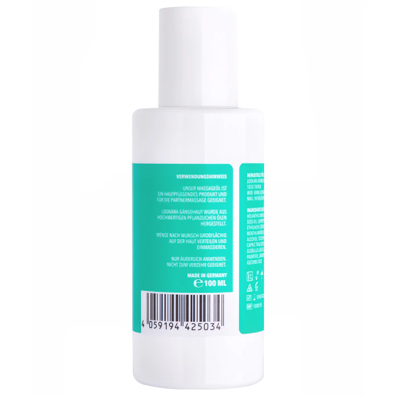 L'olio da massaggio Loovara “Goosebumps” con menta ed eucalipto ha un effetto rinfrescante e particolarmente stimolante sulla pelle. È molto ben tollerato e lascia la pelle morbida e fresca.