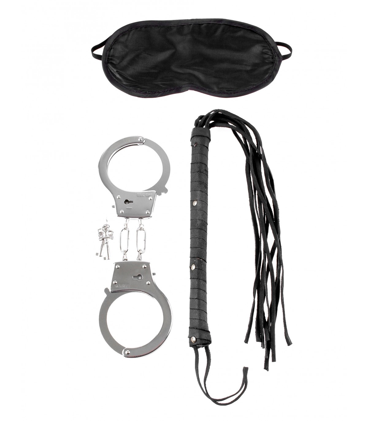 Explore each other’s naughty side with this fantasy kit for lovers! Includes: Fantasy leather whip Metal handcuffs with keys Satin Love® Mask