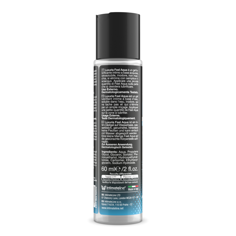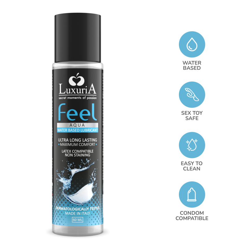 Luxuria Feel Aqua, 60 ml è un lubrificante intimo a base acquosa specifico per l’idratazione e la lubrificazione vaginale prima del rapporto intimo.