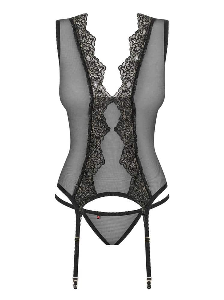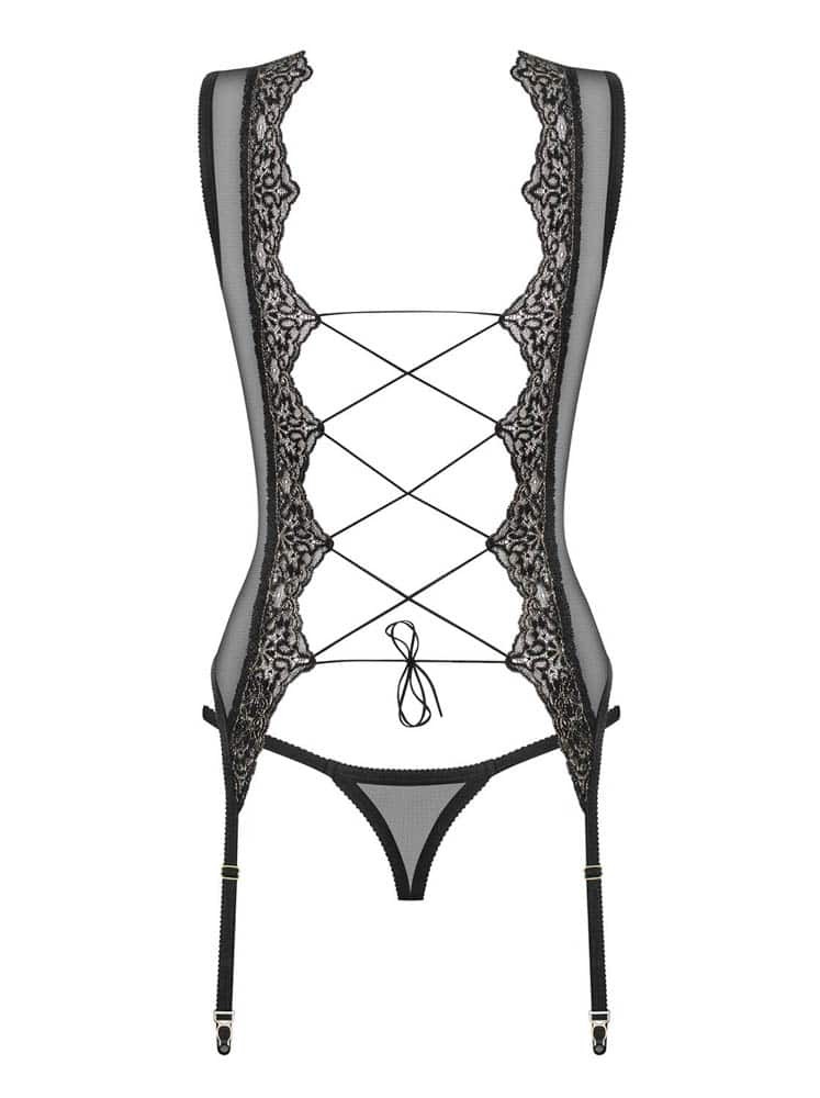 Incredibly feminine Meshlove corset. Unique, decorative lace motif extends from the shoulders to the hips. Adjustable garter straps, you can easily fit them to your liking.
