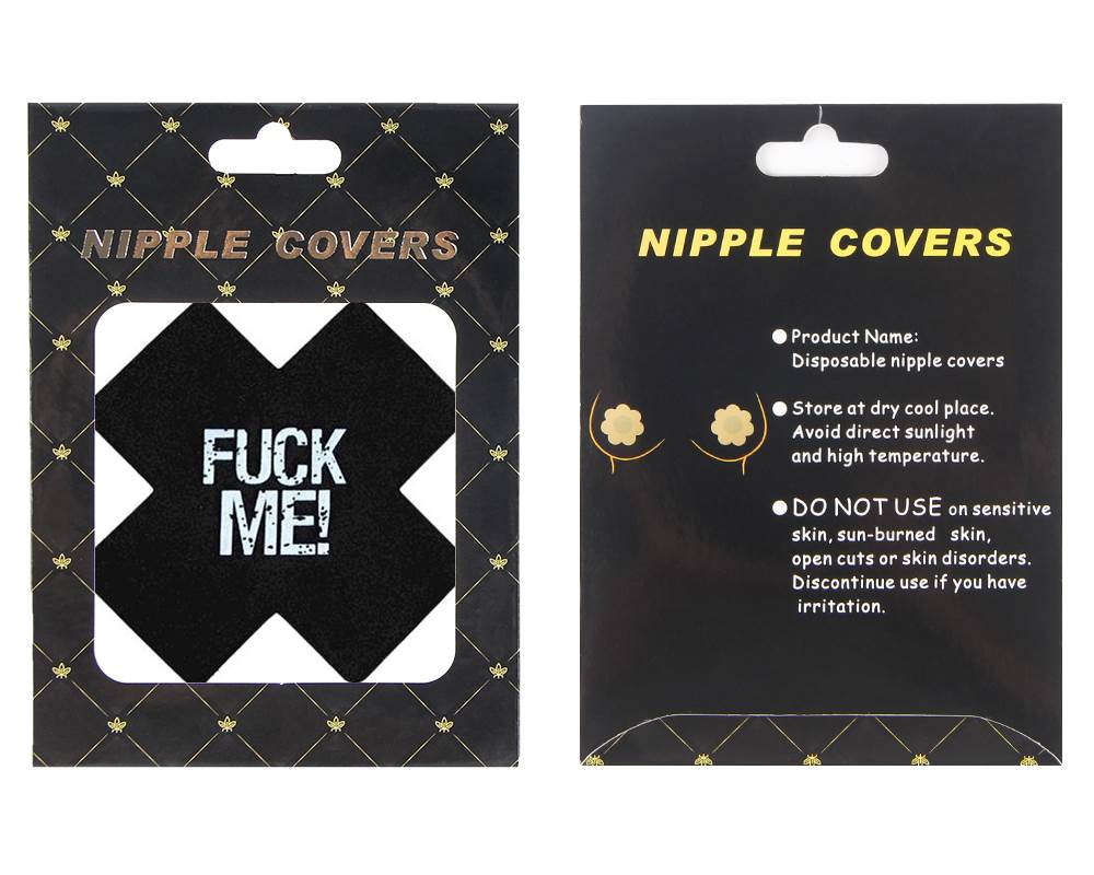 Copricapezzoli adesivi che si illuminano al buio. Scritta “Fuck Me!”
