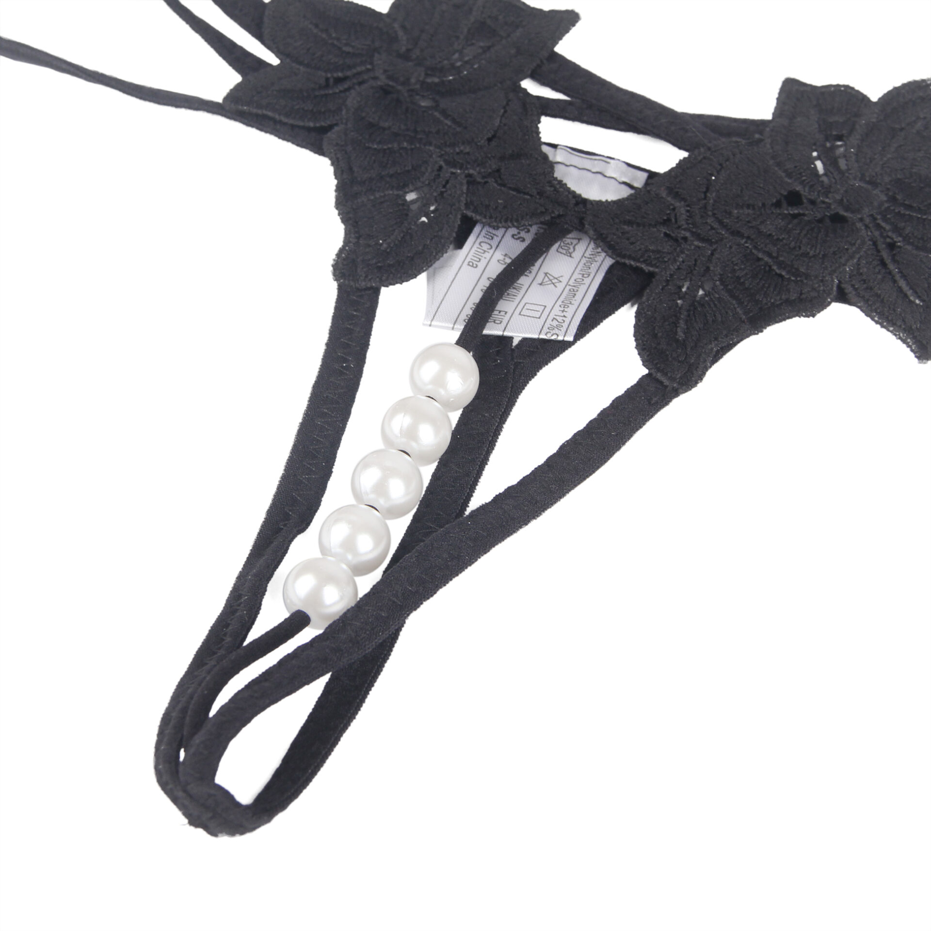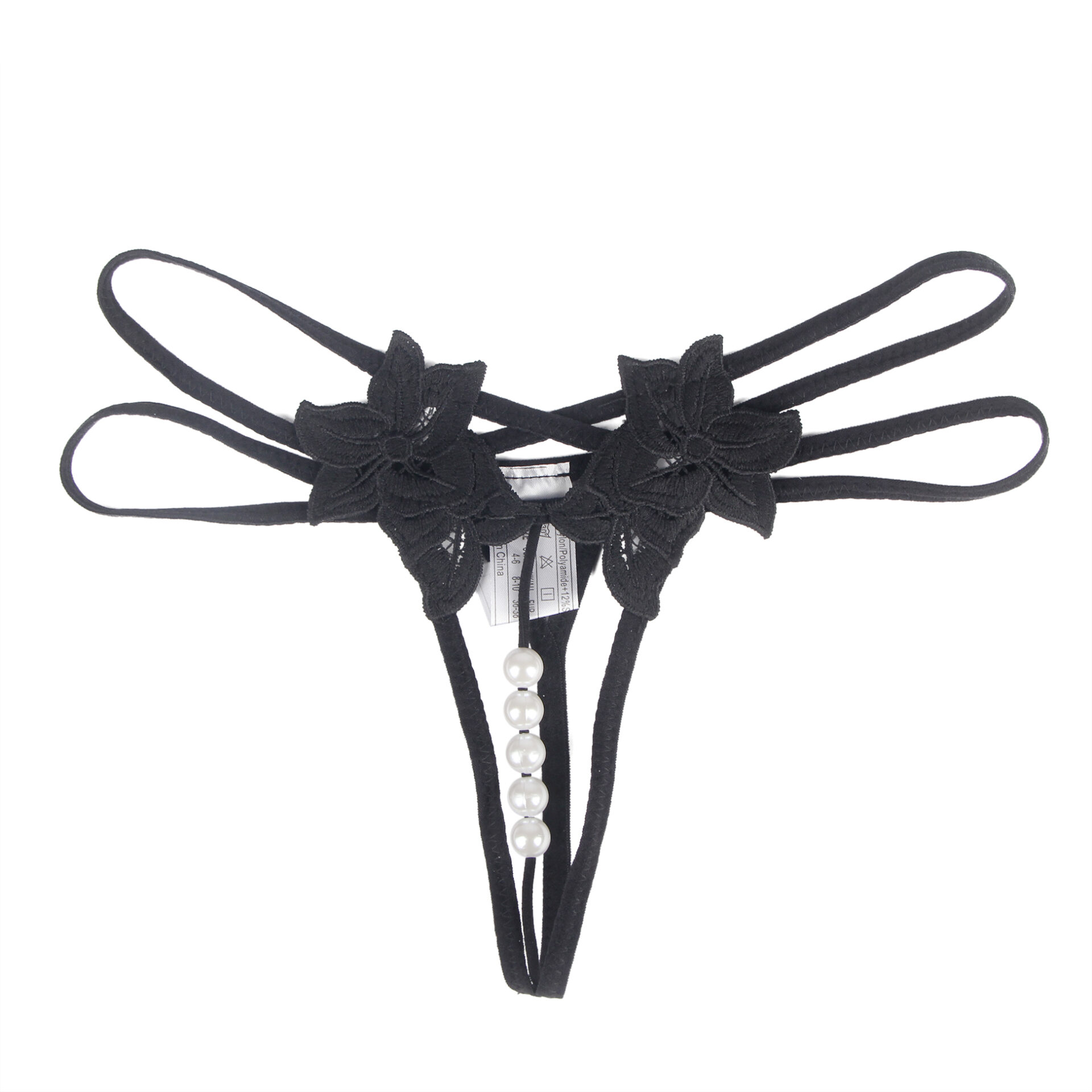 Tanga aperto con fiori laterali e perline.