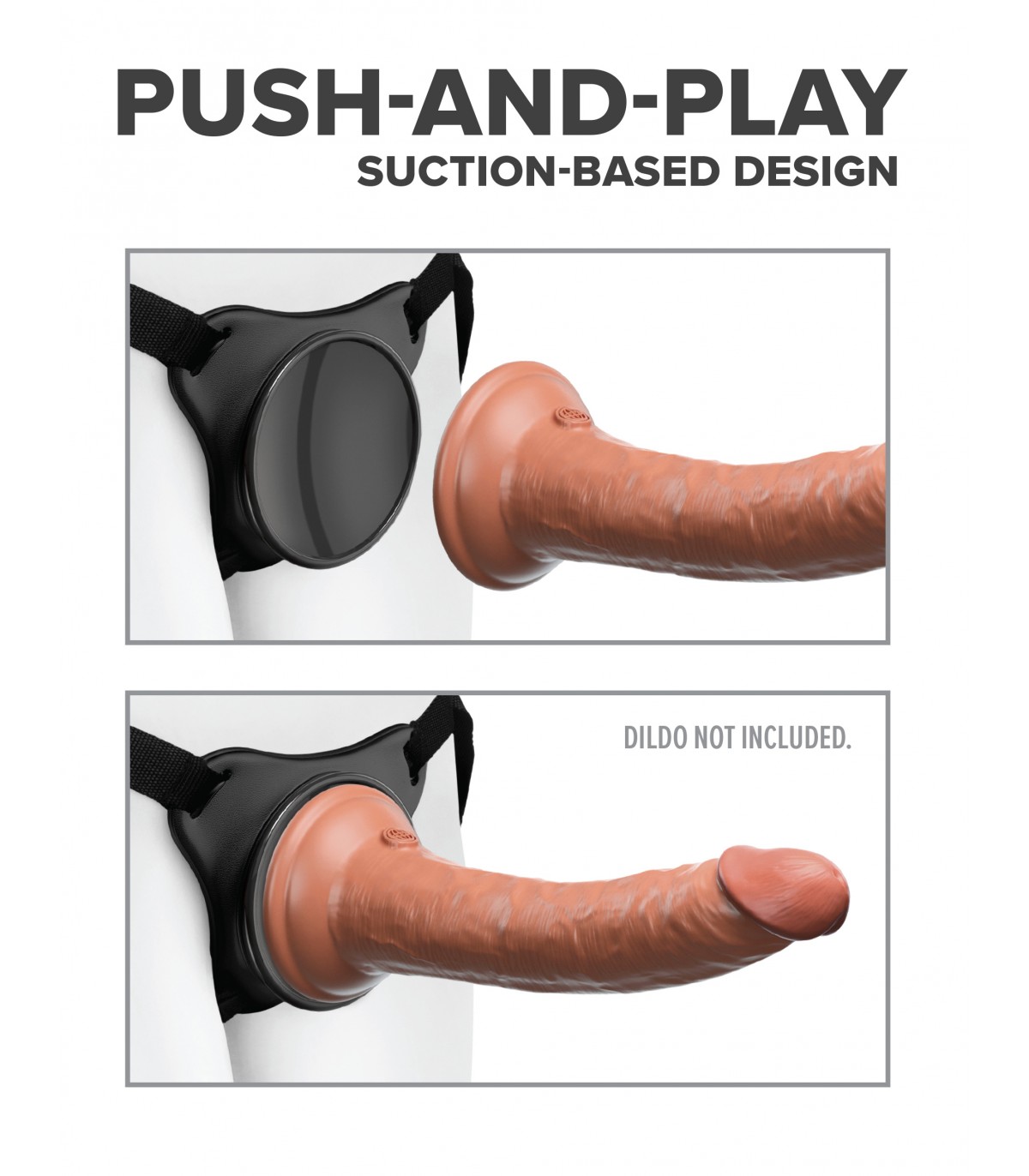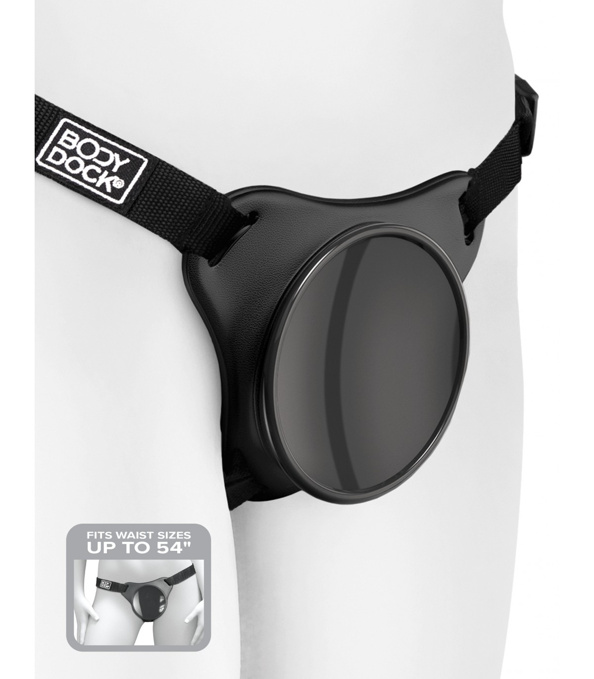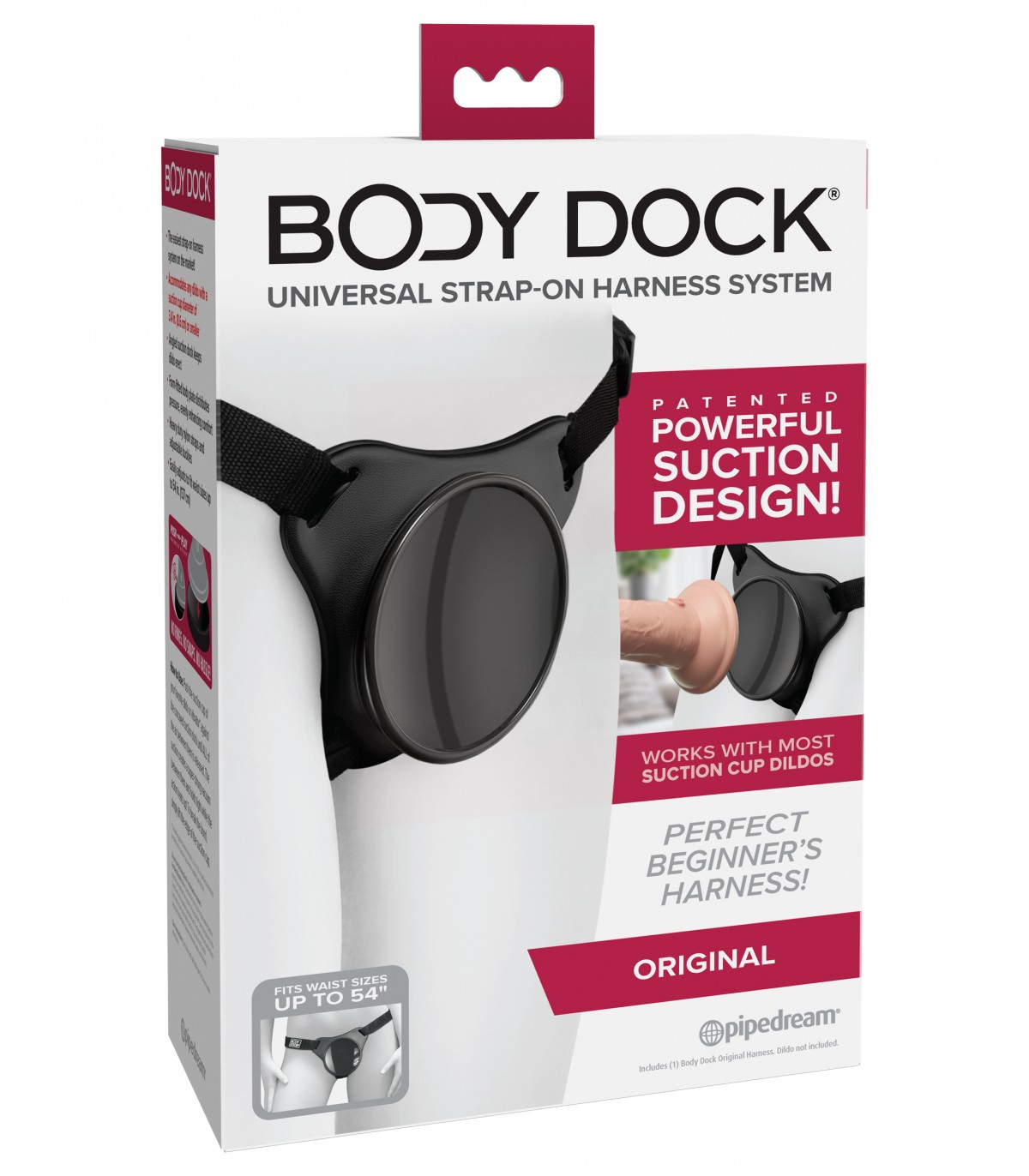 No rings, no clasps, no fuss! Patented PUSH-AND-PLAY powerful suction design! The patented Body Dock® Universal Harness System takes strap-on play to a whole new level. It’s as simple as snapping the suction cup of your favorite dildo or vibrator onto the docking plate, while the nylon straps easily adjust to fit most body sizes and types. No rings. No snaps. No fuss! Best of all, it works with most dildos on the market today, including some you may already own. Swapping out your favorite strap-on attachment has never been quicker or easier! Patented suction-based design Press and play! Simply press the suction cup of your favorite dildo or vibrator against the concave suction base until ALL the air between them is released. The suction creates a super strong bond with no rings or clips required! Angled suction plate keeps your dildo erect Body Dock® features an angled suction base to help counteract the sagging caused by traditional harnesses, keeping everything looking as natural and lifelike as possible. • The easiest harness and leash system on the market! • Fits any dildo with a suction cup diameter of 3.4 in (8.6 cm) or smaller • Angled suction base keeps dildo erect • Flexible, form-fitting body plate distributes pressure, evenly improving comfort • Strong nylon straps and adjustable buckles • Easily adjusts to fit waists up to 54 in (137 cm)