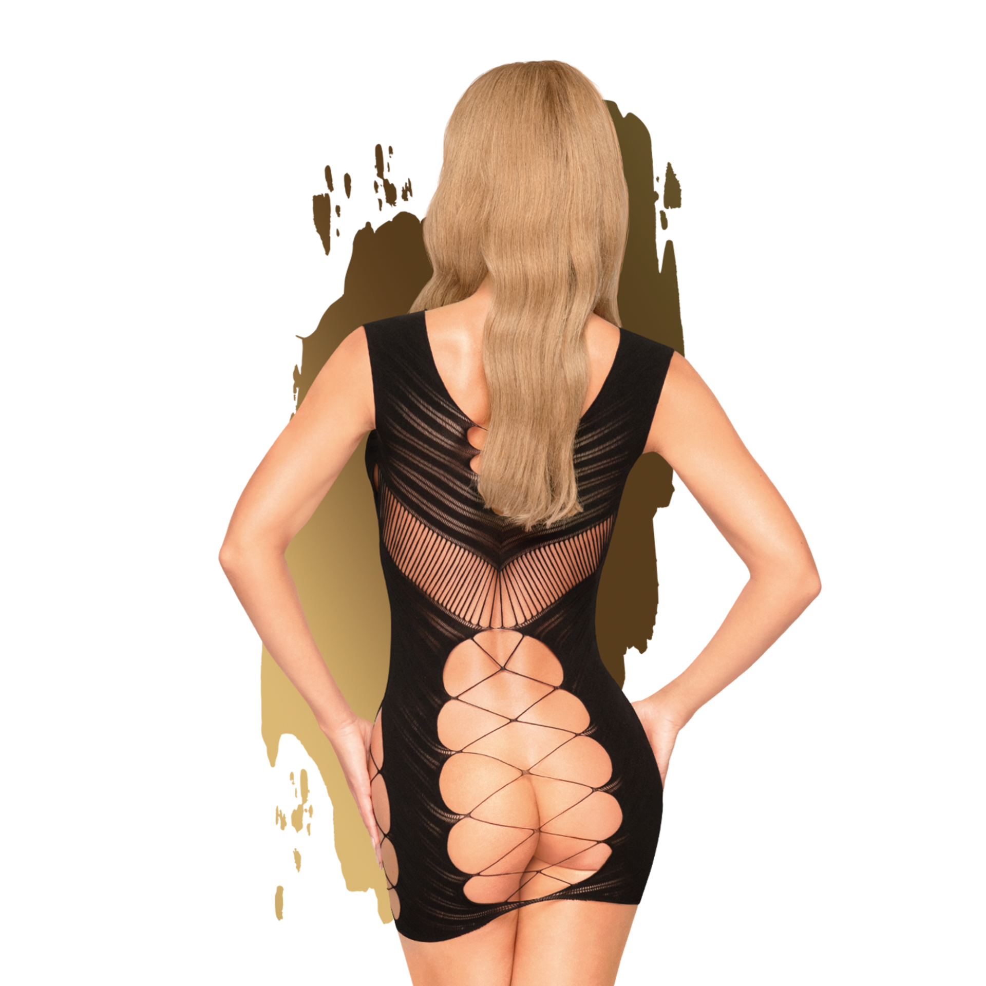 Sei pronta per una notte di fuoco? Questo raffinato mini abito mette in risalto le tue curve e ti rende dannatamente sexy! I lacci incrociati sulla parte anteriore e sul retro dell’abito stuzzicano gli sguardi indiscreti del tuo partner e sottolineano decolleté e lato B. I dettagli a fessura e il motivo leggermente geometrico ne completano il look. Più hot di così non si può!