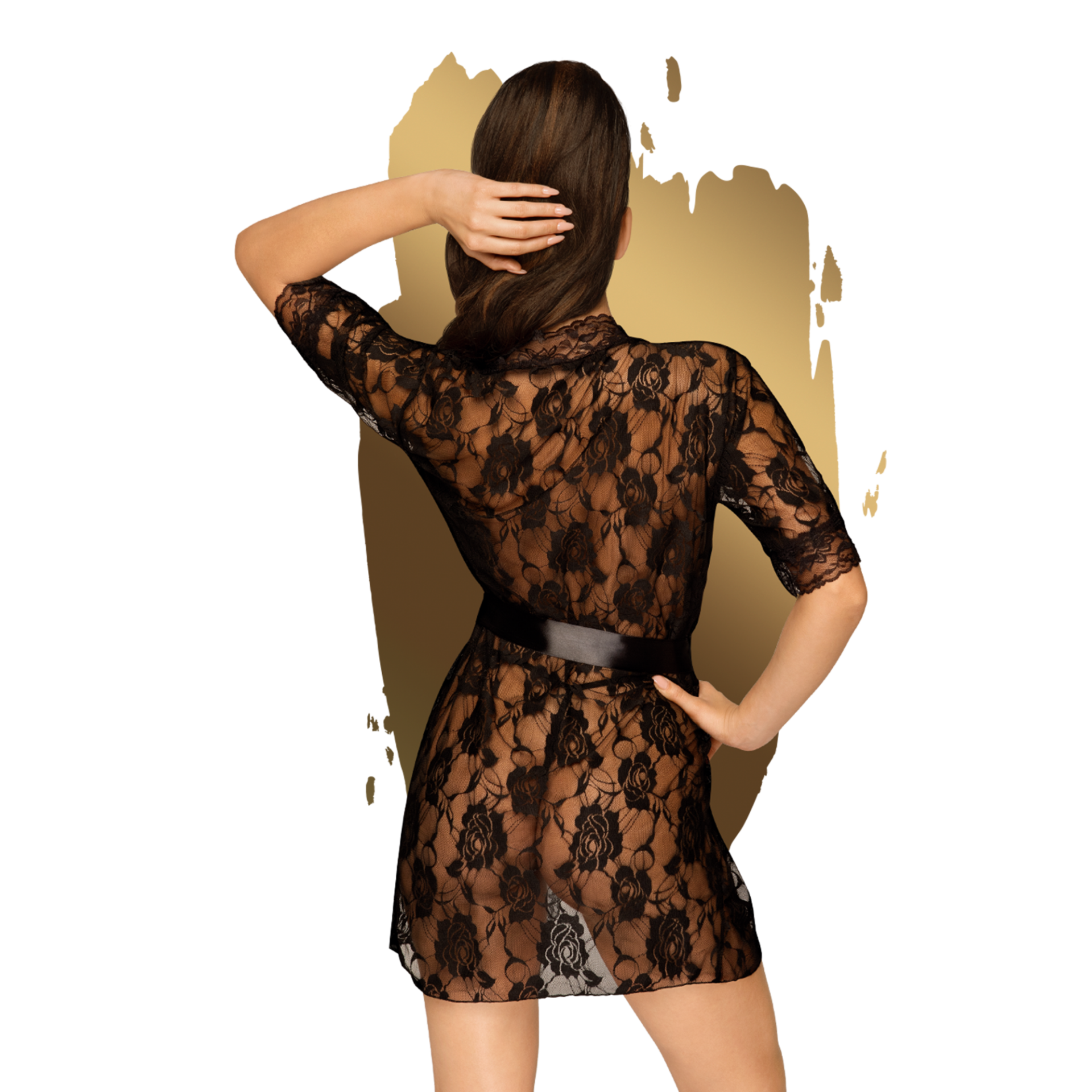 Per una notte a due indimenticabile: questo kimono ti avvolge in un delicato tessuto in pizzo che aderisce magnificamente al corpo ed è particolarmente gradevole sulla pelle. Con il nostro kimono puoi giocare sulla semitrasparenza e su una vertiginosa scollatura a V che saprà sicuramente stuzzicare il desiderio del partner. Il look è impreziosito da una cintura effetto satin con cui puoi chiudere sul davanti il kimono. Il set comprende anche un perizoma abbinato al kimono.