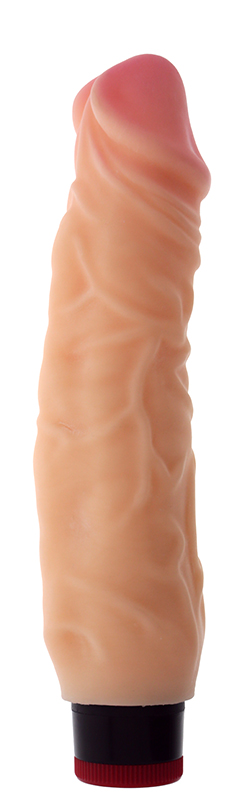 This multispeed vibrator has a realistic look and feel, with soft lifelike skin and veins and a straight penis design. It is made of non-smelling TPR. The vibrations can be gradually increased by rotating the knob at the base of the vibrator. Intense pleasure is created by the look, feel and exciting vibrations. The size of 8 inch (20.3 cm) is rather large and suitable for users who know they like it big.