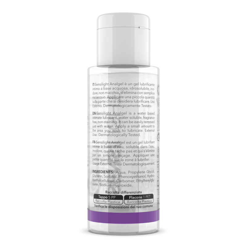 Sensilight Analgel, 30 ml è un lubrificante anale UNISEX a base acquosa, specifico per l’idratazione e la lubrificazione genitale prima del rapporto intimo.