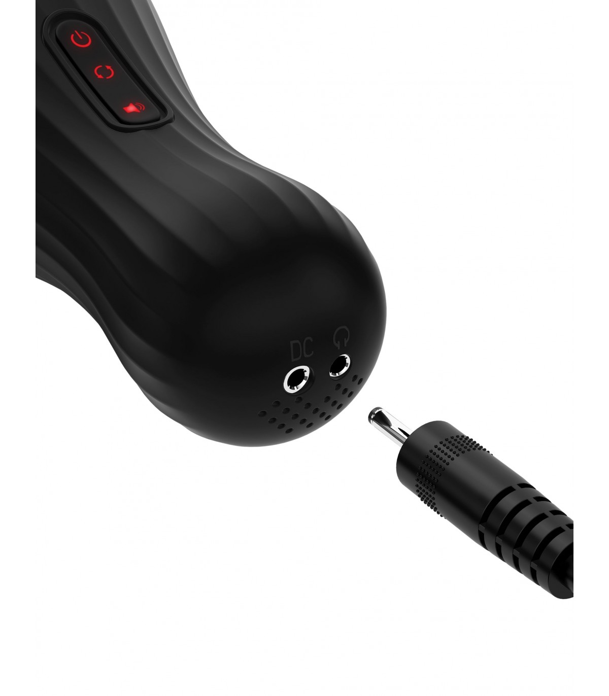 Experience true innovation in masturbation! The PDX ELITE® Talk Dirty Rotobator delivers sexy talk, breathy moans, and uniquely stimulating rotation all in a compact design. Adding the element of seductive sounds adds intense pleasure to every masturbation session, and the convenient headphone jack allows you to listen in private. The Talk Dirty Rotobator features an advanced rotation mechanism that wraps around the sensitive areas of your upper shaft. The flexible opening fits perfectly, and with each automated revolution, tiny ticklers on the super-soft TPR sleeve tease, please, and rotate at the push of a button. The portable design is perfect for travel and storage. • Rotation • Talks and moans • Ultra powerful motor • USB rechargeable • Headphone jack • Power on/off: Press and hold the power button to turn on the device. Press and hold to turn off. • Rotation: Press and hold the rotation button to activate rotation. Press it again to cycle through 7 rotation patterns, including reverse rotation options. • Sounds: Long press the speaker icon to start voice operation.