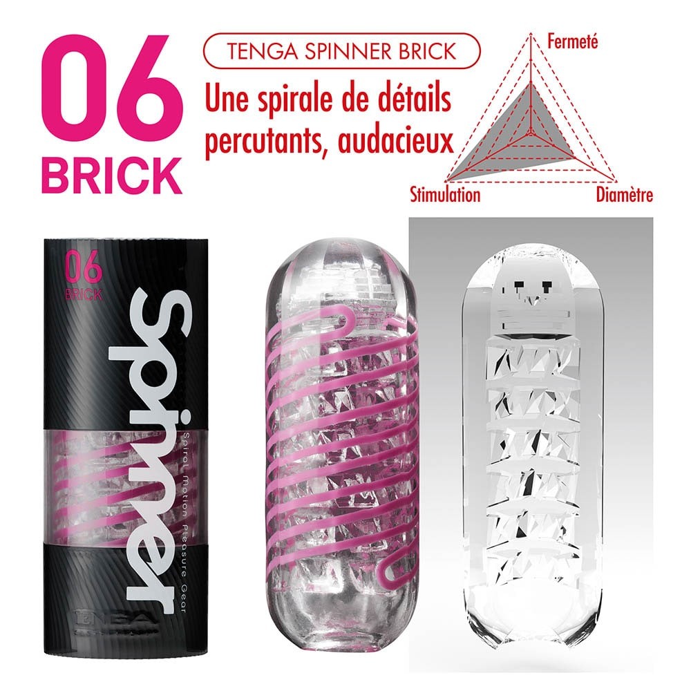 The TENGA SPINNER comes in 6 varieties, each with unique sensation strengths from their internal details as well as differing material firmness and tightness. Enjoy with this Tenga Spinner Brick Masturbator. This transparent masturbator is made of soft silicone and feels great in the hand. The Tenga Spinner Brick has a delicious and surprising interior. Due to the unique spiral of bold stimulation ridges impacting tiles , the Brick turns around your penis when moving up and down and mimics the effect of a delicious blowjob. Always use a little lubricant for a smooth and natural experience. This masturbator is flexible and always fits well around the penis.