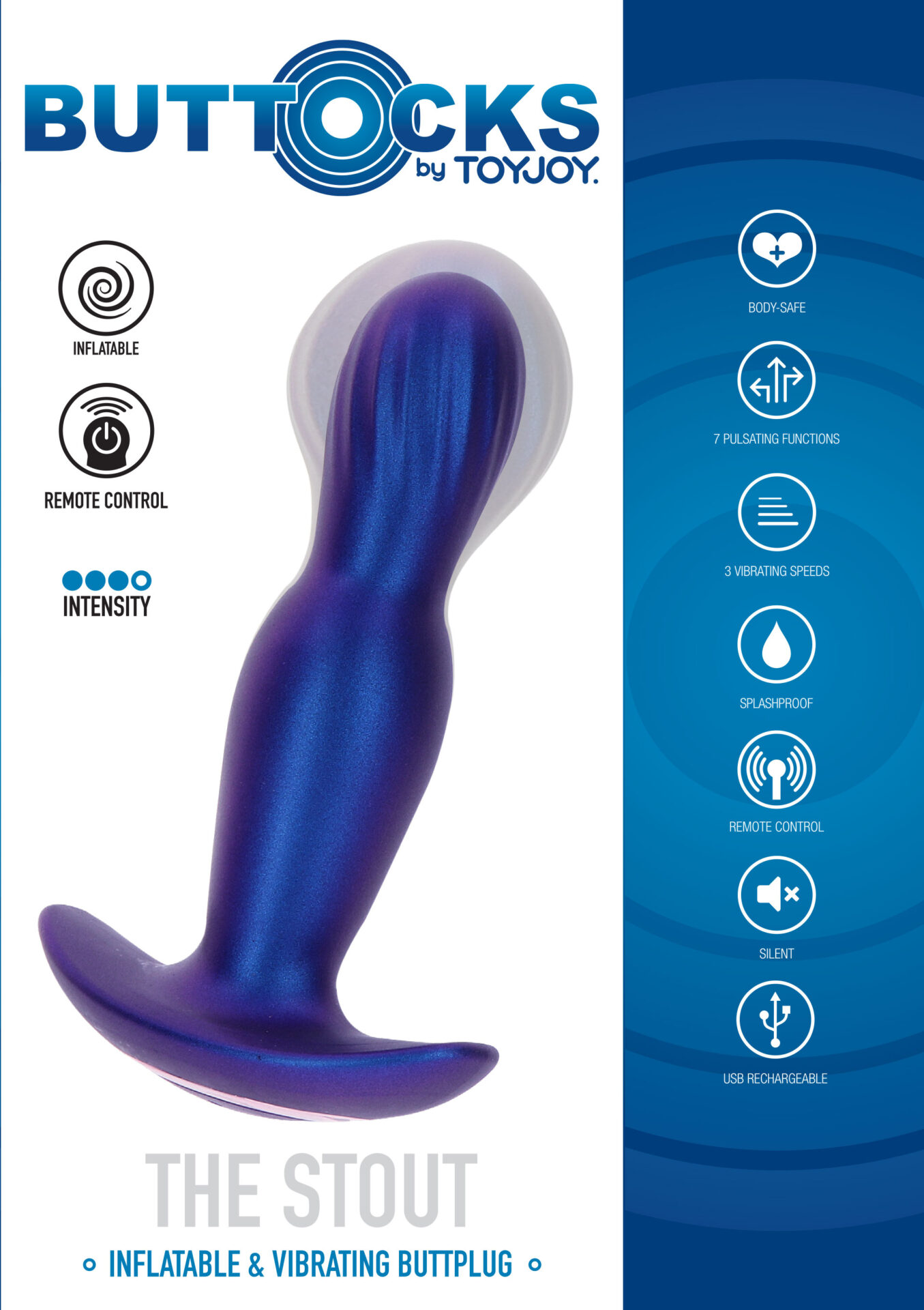 The Stout is an inflatable vibrating anal plug and features a powerful motor with 7 different vibrations modes and 3 vibrating speeds. Each mode offers deep rumbling vibrations, which are easily controlled on the item or with the included remote control. The inflatable function offers extra intensity to your backdoor adventure. Buttocks by TOYJOY is a premium line of high-performance butt plugs, created with a variety of special features to boost your anal pleasure. Buttocks by TOYJOY is the perfect choice for next-level anal stimulation.
