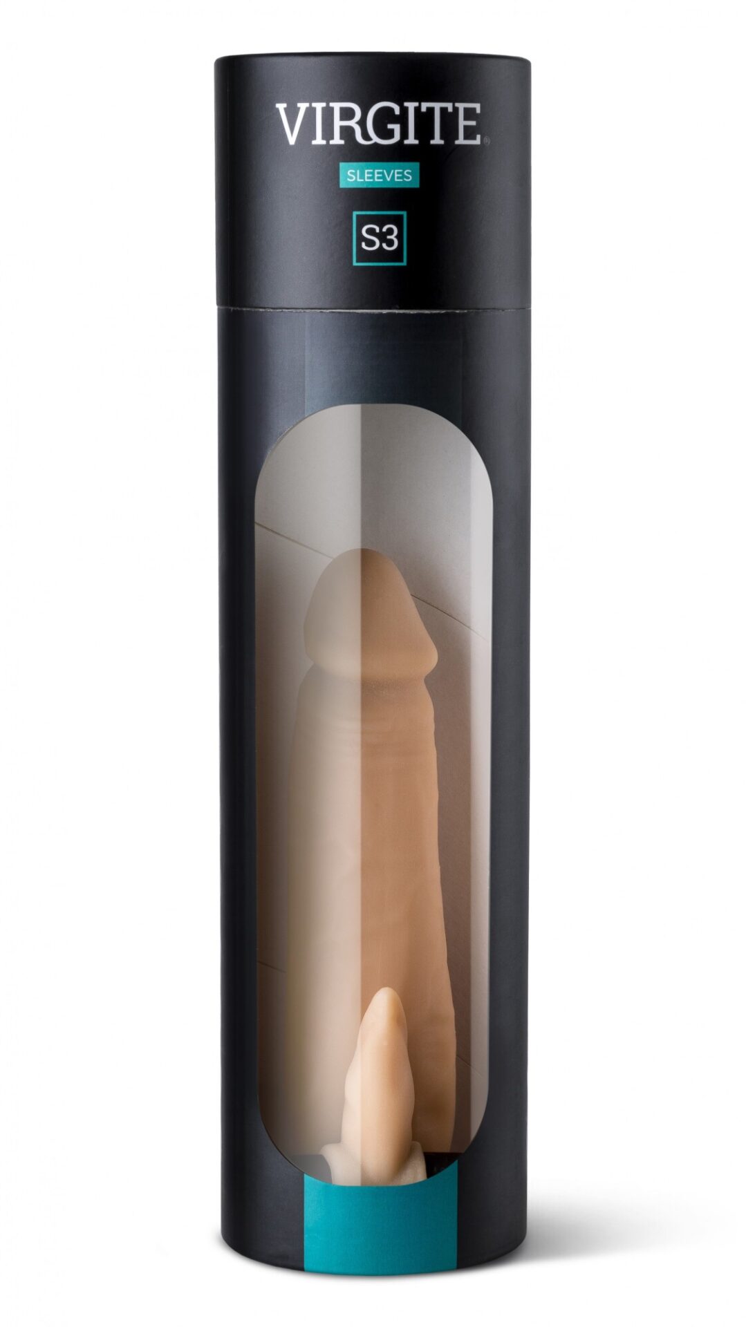 Guaina per pene realistica realizzata in TPE e presentata in un'elegante scatola tubolare.