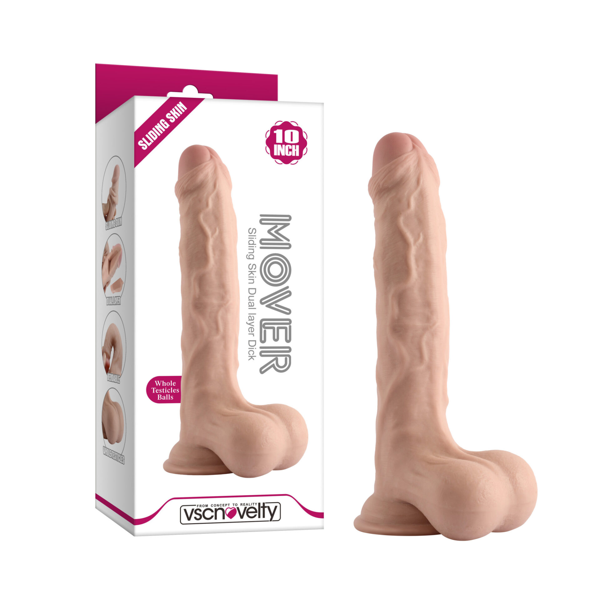 - Dildo con testicoli a doppio strato con pelle scorrevole.