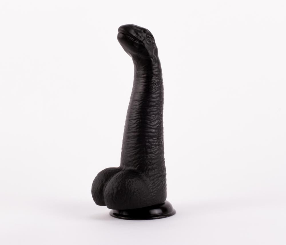 Made of high quality material with a skin-like feel similar to body tissue, this unique dinosaur-shaped bendable dildo is motorless, with a stimulating surface and testicles. Its suction cup can be attached to a flat surface.