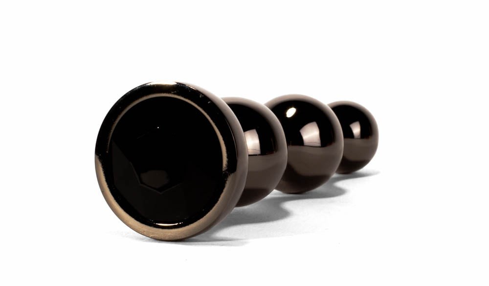 Sphincter dilator and relaxer with three spherical stimulators of different diameters. Unisex, recommended for both men and women. The shiny metallic surface glides easily and allows very comfortable penetration. The base is diamond textured and is offered in several colour variations. Cleaning : wash with lukewarm soapy water and utility cleaner before and after each use. A water-based lubricant is recommended.