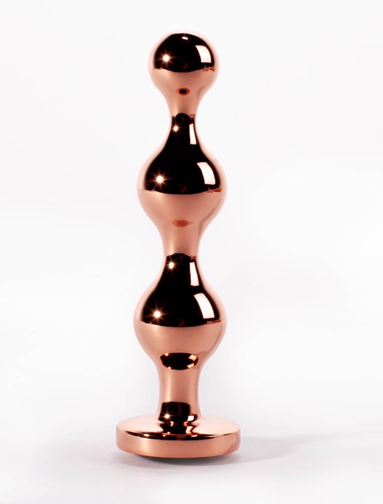 Sphincter dilator and relaxer with three spherical stimulators of different diameters. Unisex, recommended for both men and women. The shiny metal surface glides easily and allows very comfortable penetration. The base is diamond textured and is offered in several colour variations. Cleaning : wash with lukewarm soapy water and utility cleaner before and after each use. A water-based lubricant is recommended.